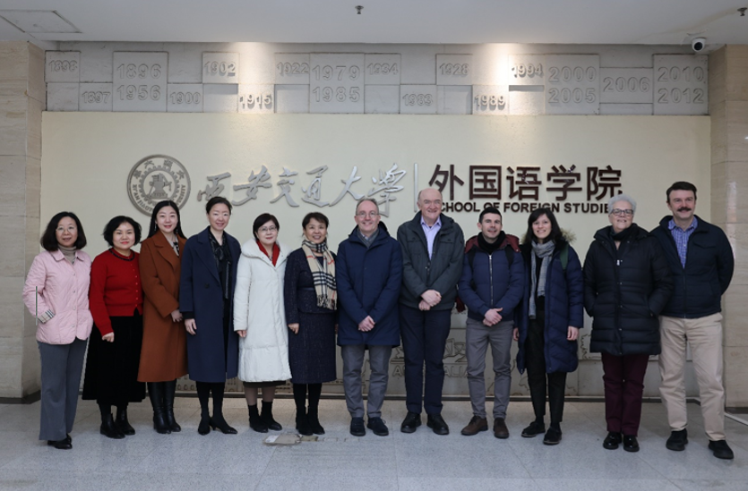 On the morning of March 1, 2024, a delegation from Lancaster University of the United Kingdom visited Xi'an Jiaotong University (XJTU) and had an exchange meeting with the School of Foreign Studies (SFS) and the Department of International Cooperation & Exchanges of XJTU. Anthony Mark McEnery, Paul Baker, Elena Semino and Jonathan Culpeper, four professors from Lancaster University, Lei Yanjun, Deputy Director of the Department of International Cooperation & Exchanges, and SFS leaders, teachers and students attended the meeting.