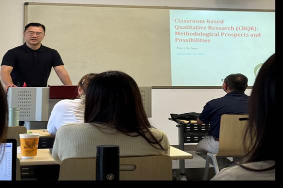 9月26日下午,外国语言文化论坛第265期在创新港涵英楼2-2058教室举行,本次论坛主题为“基于课堂的定性研究(CBQR):方法论的前景和可能性”,特邀美国密歇根州立大学的Peter I. De Costa教授与师生共同探索二语习得前沿话题,论坛由高洋研究员主持。De Costa教授在语言学、语言与文化领域拥有深厚的学术背景,是TESOL硕士项目的负责人,并担任第二语言研究博士项目的核心教员。他的职业经历跨越多个国家和教育层次,拥有丰富的教...