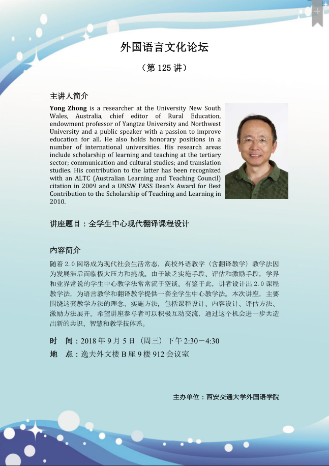 copyright © 2012 西安交通大学外国语学院 All Rights Reserved.