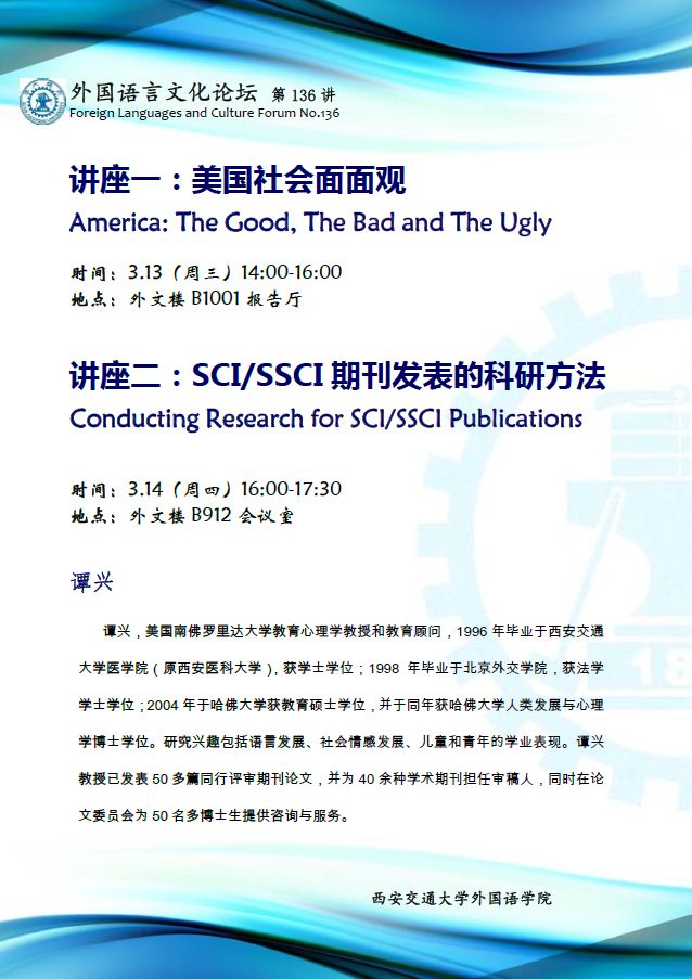 地址:陕西省西安市咸宁西路28号 邮编:710049学院联系电话:029-82663712 传真:029-82665683copyright © 2012 西安交通大学外国语学院 All Rights Reserved.