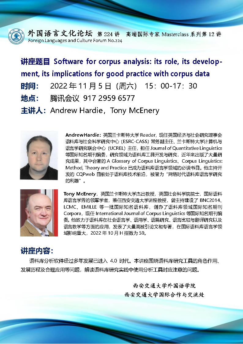 时间 11月5日(周六)15:00-17:30 地点 腾讯会议 917 2959 6577