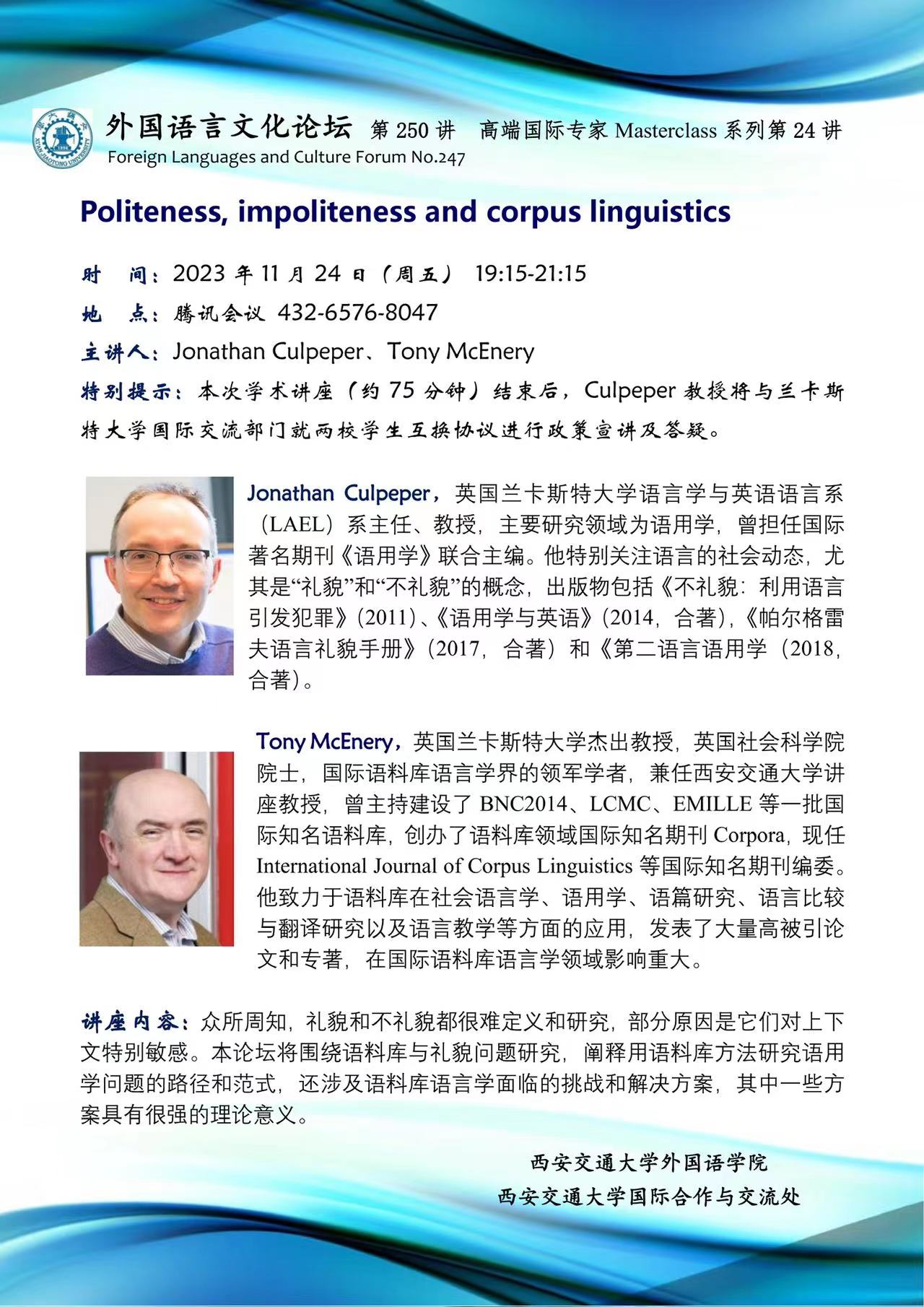 主讲人 Jonathan Culpeper, Tony McEnery