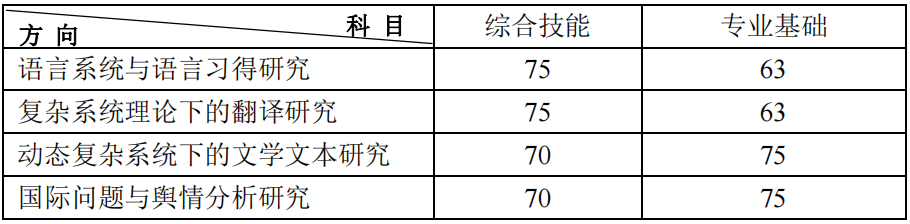 按照《西安交通大学外国语学院2022年博士研究生“申请-考核” 制实施细则》中的规定,专业考核有任一科目不及格者不能进入一下环节;经学院博士招生工作领导小组讨论决定,专业考核分数线如下: