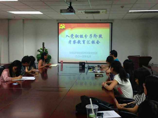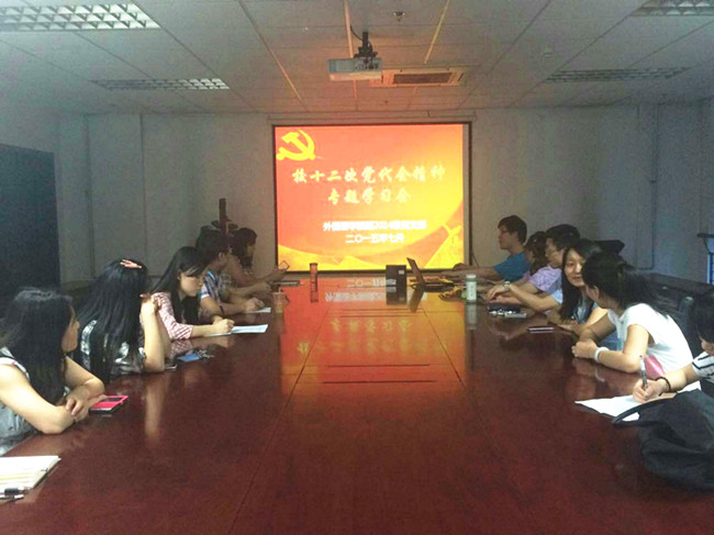 为深入学习宣传贯彻学校第十二次党代会精神,7月19日晚,外国语学院硕2014级党支部在逸夫外文楼B912会议室举行贯彻党代会精神学习会。硕2014级党支部学生党员、积极分子参会学习。学院团工委书记、辅导员马薇老师应邀出席。支部书记陆天舒主持学习会。