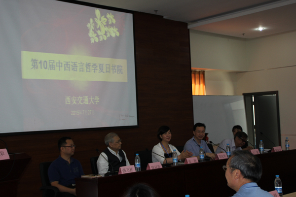 会议开幕式由我校外国语学院副院长郭继荣教授主持,我校副校长郑庆华教授首先代表学校热情欢迎与会的各位专家、代表,并就西安交通大学的历史沿革和外国语学院以语言支持其他多学科发展、提升自身学科建设的定位做了介绍;四川外国语大学党委副书记张艳教授代表中西语言哲学会秘书处设立单位向与会者的积极参与表示感谢,表达了对学会工作的高度重视和全力支持,希望第十届夏日书院参会专家、学者、代表在充分交流中碰撞出思想的火花;西安交通大学外国语学院陈向京院长代表外国语学院致辞,她提出夏哲院的举办不但为西安交通大学外国语学院提供了展示学院风采、宣传学院建设的机会,更为学院科研发展提供了新的可能突破点与增长点;中西语言哲学研究会名誉会长钱冠连教授接强调了语言哲学对于启迪智慧、锻炼思维、促进人的发展所产生的巨大作用,号召更多的教师勇敢跨入语者的大门;中西语言哲学研究会名誉会长王寅教授在代表学会的发言中重申这一观点,并向各界同仁对学会的发展所作出的努力表示感谢,号召中国外语界不断提高理论修养,在后语言哲学的研究中发展自己的理论。最后,协办单位出版社及期刊的代表做了简要发言。