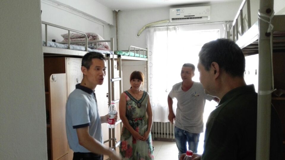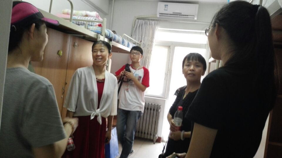 8月22日下午,学院院长陈向京,分党委书记杨小渭,副书记张长安,英语系李雅丽,法语系王奕,辅导员马薇等学院领导老师在彭康书院院务主任苏玉波,副主任郭虎,院务主任助理段继超,辅导员饶昱久的陪同下前往学院2015级新生入住的彭康书院东17和东19宿舍楼走访,看望新生并与新生及其家长亲切交谈。