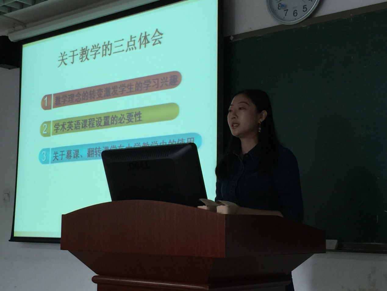钱希老师的汇报提到了三点:第一,教学理念的改变激发学生的学习兴趣。第二,学术英语课程设置的必要性。第三,关于幕课、翻转课堂在大学教学中的使用。钱老师的汇报结合了大量自己授课中的案例,并且展示了把伯克利所学如何立刻运用到课堂中去。她提到了教学理念的转变,从“教师为中心”到“学生为中心”到“学习为中心”,强调同伴学习和师生共同学习。赵晓英老师汇报了更多政策和管理方面的体会,比如人事制度,本科教学,学生事务管理,如何平衡科研和教学等,并且提出了一些教师管理方面的好的建议。另外,赵老师还给大家播放了一段授课视频,直观地展示了如何有效设置一堂课,怎么启发学生的思考和讨论。两位老师都提到虽然培训的时间有限,但是收获不小,尤其是能够和学校其他学院老师进行跨学科的探讨,对于自身教学水平的提高和视野的开阔都大有裨益。