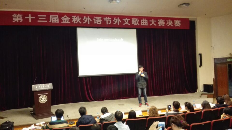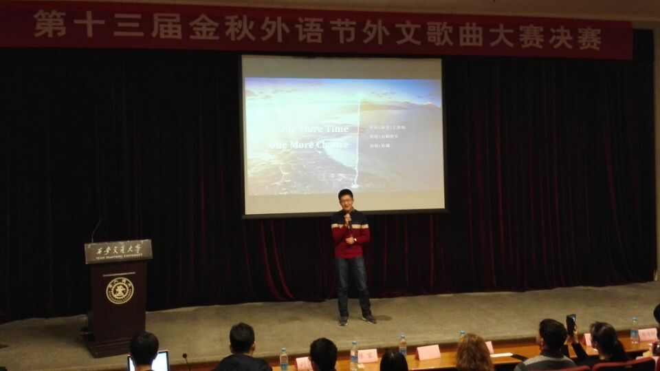 11月20日晚,第十三届金秋外语节外文歌曲大赛决赛在科学馆101拉开序幕。本次活动由教务处、研究生院、国际处、学生处、就业创业中心、校团委和外国语学院主办,FM86.1英语调频台和外国语学院研究生会承办。