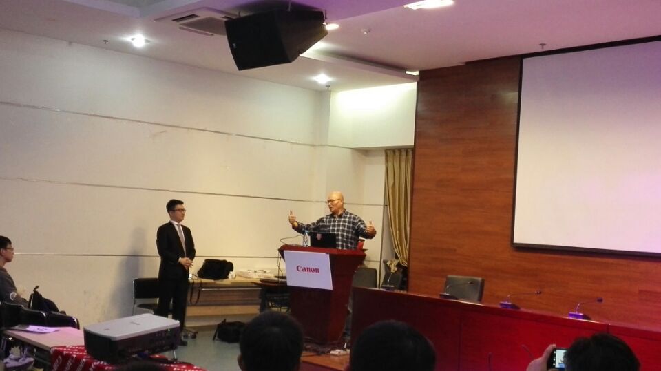11月19日,由西安交通大学外国语学院、佳能(中国)有限公司主办的“摄影大篷车”讲座在逸夫外文楼B座10楼报告厅举行。主讲人为高级记者、资深摄影家成卫东。前来旁听讲座的除外国语学院的同学外,还有众多摄影爱好者。