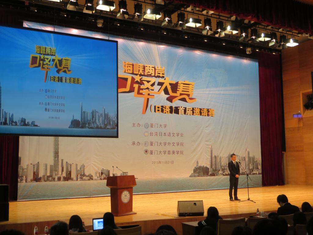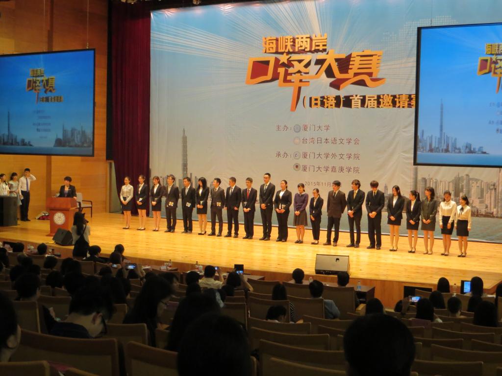 本次日语口译大赛由厦门大学以及台湾日本语文学会主办,汇集了两岸20所知名高校的21名选手参与。其中大陆地区10所,包括北京大学、复旦大学、西安交通大学、北京外国语大学、上海外国语大学等。台湾地区10所,包括东吴大学、台湾大学、辅仁大学、政治大学等。本次大赛在促进海峡两岸日语口译发展,加深海峡两岸年轻学子相互理解交流方面具有十分积极的意义。厦门大学朱崇实校长出席了开幕式并致辞。