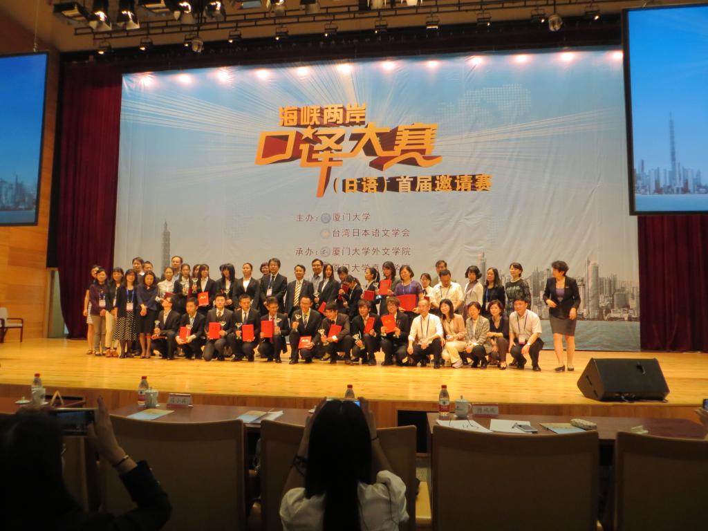 此次大赛由我校外国语学院日语系李国栋副教授带队,大赛之后22日上午,在厦大外国语学院举行了海峡两岸日语应用型人才培养模式论坛,李老师在论坛上介绍了我校MTI日语教育的现状及发展,两岸同行畅所欲言,充分交流,均表达了今后进一步加强交流的良好愿望,为培养高水平翻译人才不断努力。