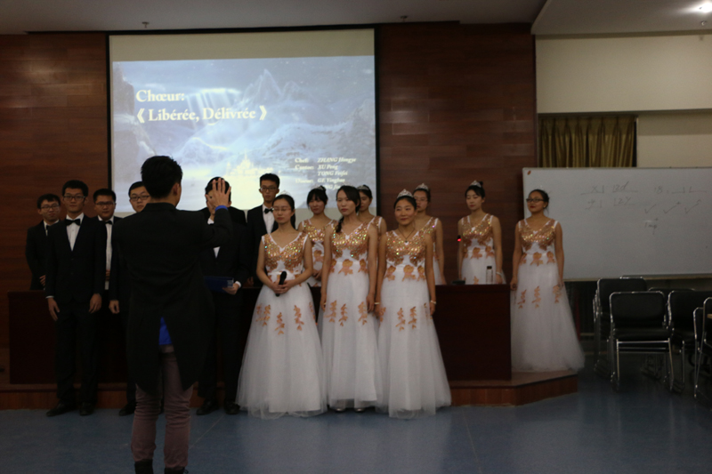 由法语41班倾情演出的《灰姑娘》夺得桂冠,参演人数众多,每个人将状态发挥到最好,全场笑声不断。李金梦同学的歌舞表演,伴着搭档美妙的吉他伴奏,在场的每一个人都好像沉醉在自己的青春之中,连老师们都仿佛回到了自己的大学时代,将语言与音乐的魅力完美结合。在众多精彩纷呈的节目中,最令人感动的是大四英法专业的合唱,感人肺腑的歌声背后是他们在一起度过的每一个春秋寒暑,是他们共同分享的每一次喜怒哀乐,是他们对彼此最简单也是最真诚的情谊。看着屏幕上一张张合影照片,在场同学也会或多或少想象几年后自己和同学们分别的场景,促使大家更加珍惜现在在一起的时光。即将面临毕业的大四学生用合唱的表现形式表达了对彼此最好的祝福。