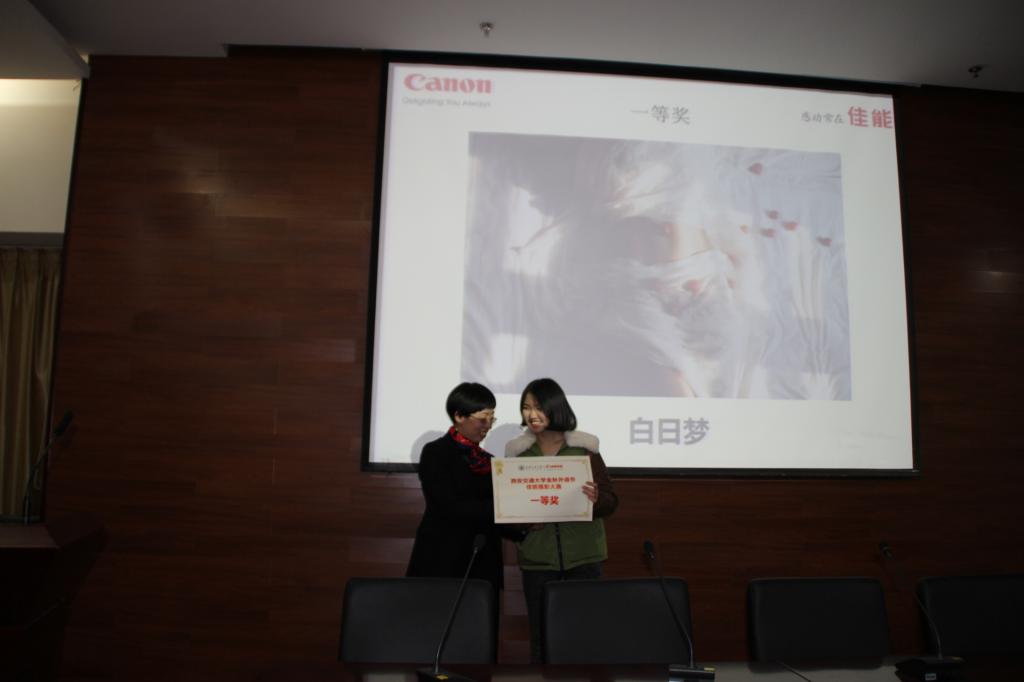 随后,现场嘉宾为佳能摄影比赛获奖选手颁奖,佳能(中国)西北区域管理部高级经理庄励励女士致辞,她表示在金秋外语节闭幕式度过了一个非常愉快的夜晚,同学们的多才多艺令她惊讶,她简单介绍了佳能公司,希望同学们喜欢佳能的产品。最后,金秋外语节在一首悠扬美丽的英文歌曲《Memory》中正式闭幕。