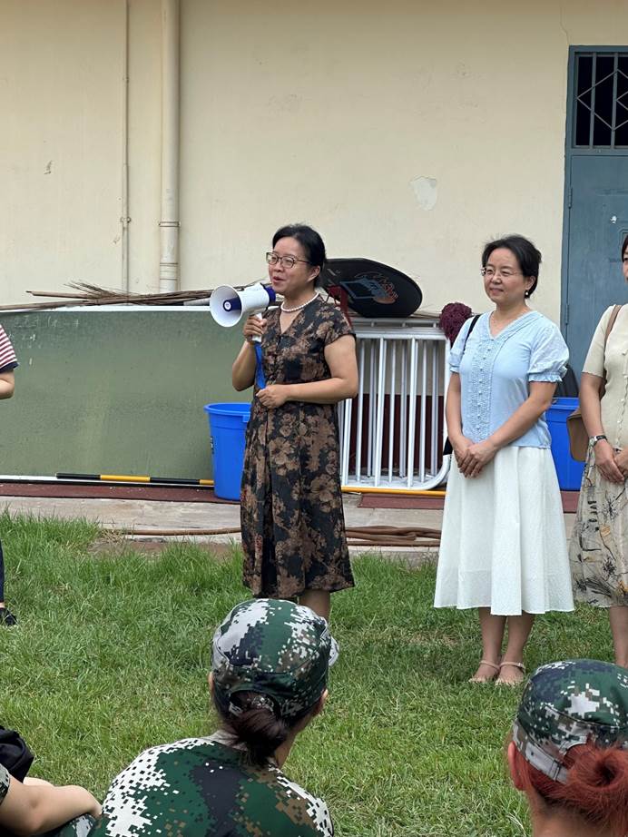 许明副书记首先代表学院对承训教官和带队指导员老师表示感谢,对同学们表达关心和慰问。她讲道,欢迎各位同学加入西安交通大学外国语学院大家庭,军训的过程尽管有些艰苦,但在强健体魄的同时,也能收获不怕困难、互帮互助、勇往直前的精神。希望同学们以军训为起点,将这种精神运用到今后的学习、生活和工作中。另外,嘱咐各位同学遇到任何困难都可以向辅导员和班主任老师们寻求帮助。最后,许明副书记祝愿同学们在交大外国语学院的生活中,都能健康快乐并有所收获。