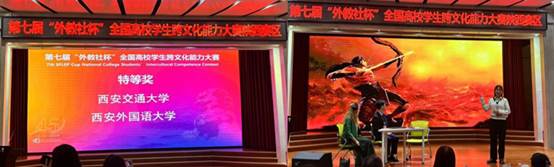 2024年10月20日第七届“外教社杯”全国高校学生跨文化能力大赛陕西省赛在陕西师范大学圆满落幕,由英语专业的刘钰璘、临床医学的陈妍瑾和自动化的李嘉一三位学生组成的我校代表队荣获陕西赛区特等奖,外国语学院黄平安、董艳云及孙长虹三位教师获评优秀指导教师。