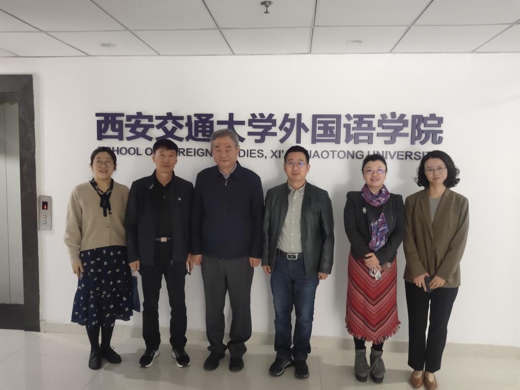 10月24日上午,内蒙古科技大学研究生院院长杨立东,外国语学院院长耿伟,外国语学院教师毕琳娜一行来访西安交通大学外国语学院,双方在外文楼B715会议室座谈交流。西安交大外国语学院党委书记张长安、MTI教育中心主任吉乐、副主任许梅参加座谈。