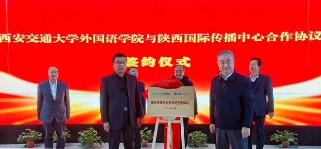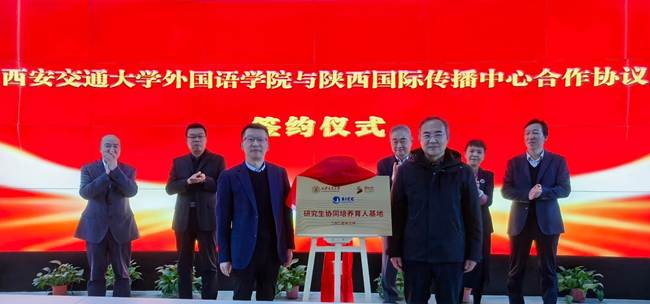 3月5日, 外国语学院与陕西国际传播中心合作签约,及西安交通大学与陕西广电融媒集团“研究生协同培养育人基地”揭牌仪式,在陕西国际传播中心举行。校党委常委、宣传部部长、统战部部长成进出席见证。