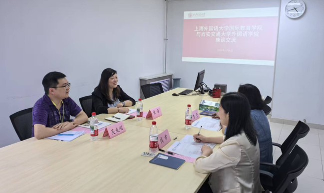 6月6日下午,上海外国语大学国际教育学院副院长黄芳、院长助理及教育技术专业主任吴成刚一行赴我院调研,西安交通大学外国语学院副院长李莹、院长助理钱希参加了座谈会。