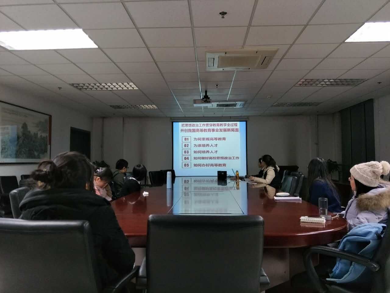 之后,支部组织委员张英贤同志带领大家共同学习了习近平同志在全国高校思想政治工作会议上的讲话精神。通过观看会议的相关视频,同学们感受到了国家对高等教育的重视,以及培养人才的目标。习近平主席指出,教育强则国家强,要实现中华民族的伟大复兴,必须重视教育的地位和作用。张英贤同学认为,作为一名享受高等教育的研究生,我们应该与国家的目标保持一致,坚持“四个正确认识”,勇于走在时代前列,学好专业知识,在以后的工作岗位上做出更多的贡献。随后,高玲同志为大家分享了自己在求职过程中的经历和感悟,认为用人单位对外语专业的毕业生期望很高,尤其是口语能力,因此,大家一定要提高自己的口语水平,才能找到满意的工作。通过这次学习,支部成员意识到了要培养自己的国际视野,认识到时代责任和历史使命,更加坚定了学好本领的自信心。