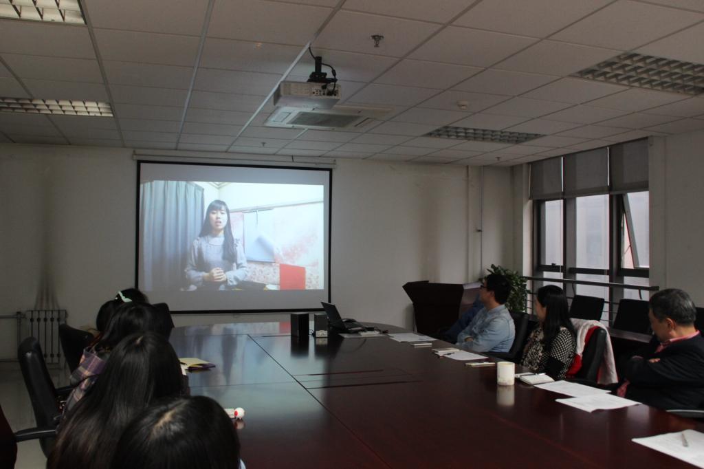 答辩评审会上,7位同学依此采用PPT汇报的方式,结合各自一学年以来思想、学习、生活等方面的成长进行3分钟的自我陈述,随后评委组结合其培养情况和答辩表现进行2分钟现场互动提问。另外,2位目前在国外交换学习的积极分子也通过视频VCR的方式现场传递了自己的声音。答辩结束后,积极分子离席,评审组综合评分,之后还就发展对象确立事宜进行商议。