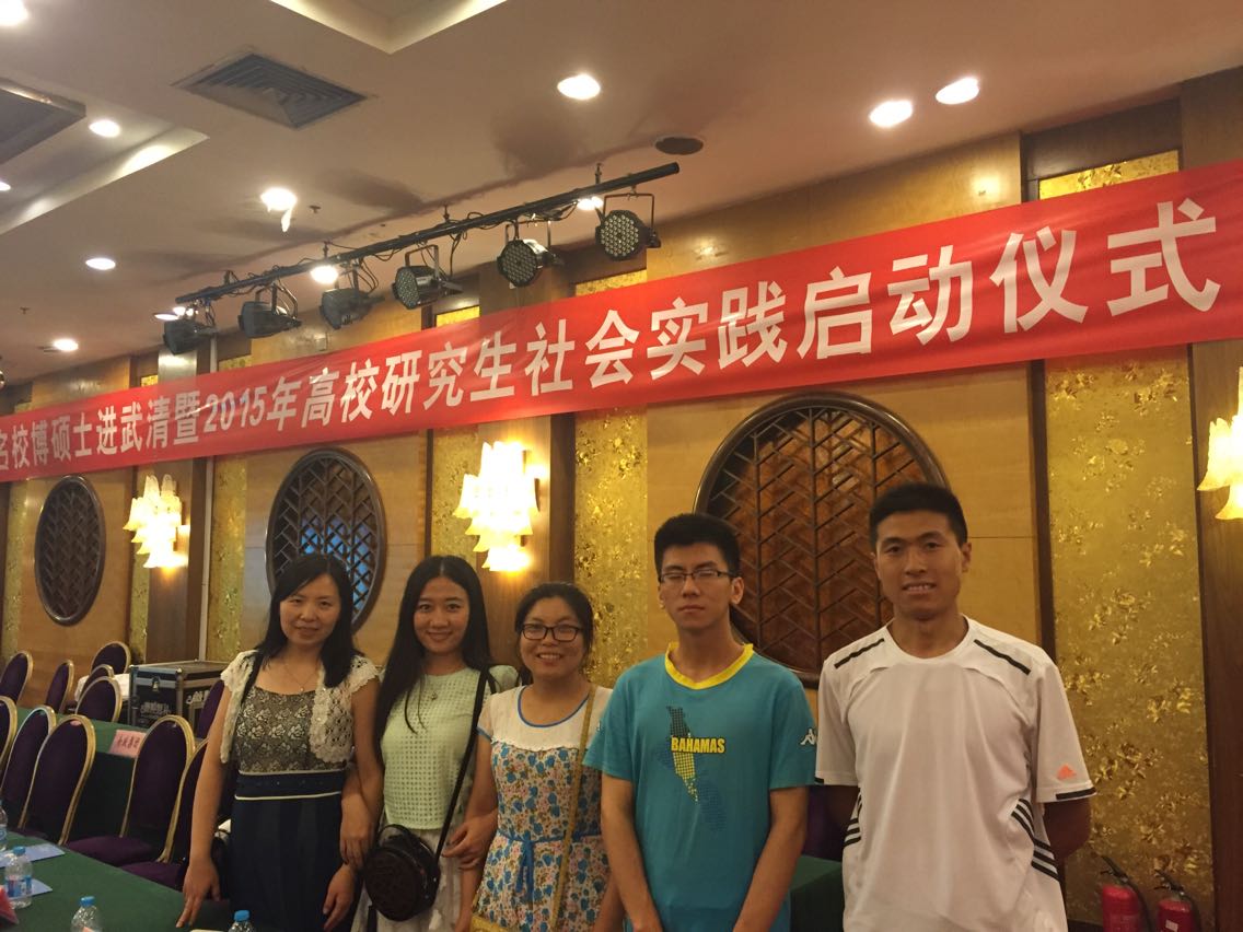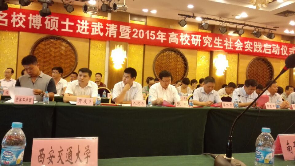 7月13日下午,我校与清华大学、北京大学、北京航空航天大学、南开大学、天津大学、上海交通大学、浙江大学等八所“985”高校的师生参加天津武清区名校博硕士进武清暨2015年高校研究生社会实践启动仪式,天津武清区区委组织部、团区委、发改委、人社局及武清区各企事业单位领导出席,会议由武清区区委组织部常务副部长刘集贺主持。