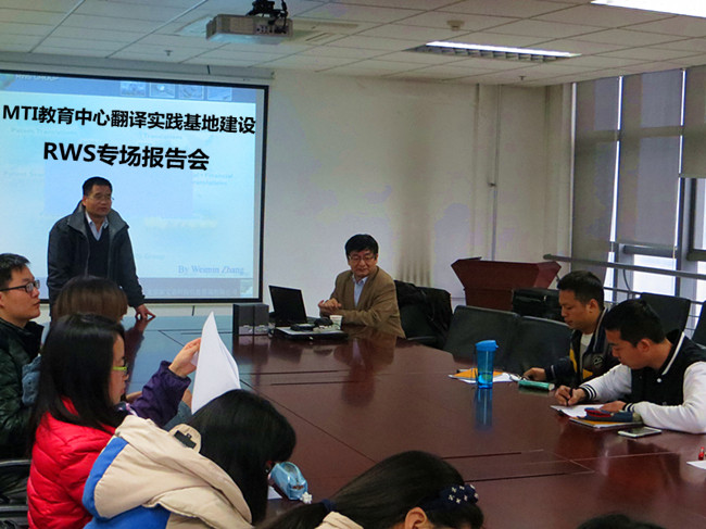 报告会前,聂文信主任代表MTI教育中心对张总经理一行的远道而来表示热烈欢迎。他强调,2015年MTI教育中心将步步为营,不断推进与北京如文思公司的翻译基地建设工作,分层次、分阶段、分领域地培养选拔精英学生译员队伍参与实战,探索卓有成效的合作模式,推进翻译实践基地化、市场化、精品化。