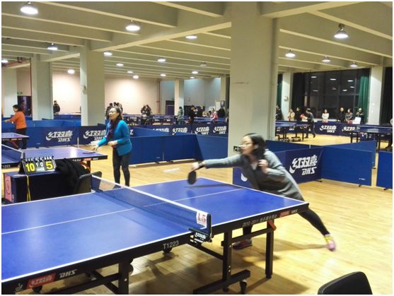 2015年西安交通大学教职工乒乓球单项比赛于11月下旬大学生文化体育中心二楼举行,我院谢金录,霍愿,胡勇强,左佳四位老师分别参加了男、女单打的单项比赛。由于比赛场地的冲突问题,单打比赛被安排到了晚上8:00才开始,尤其是霍愿老师的那场比赛居然被延迟了2个多小时,但是我们的队员都按时来到场边等候。