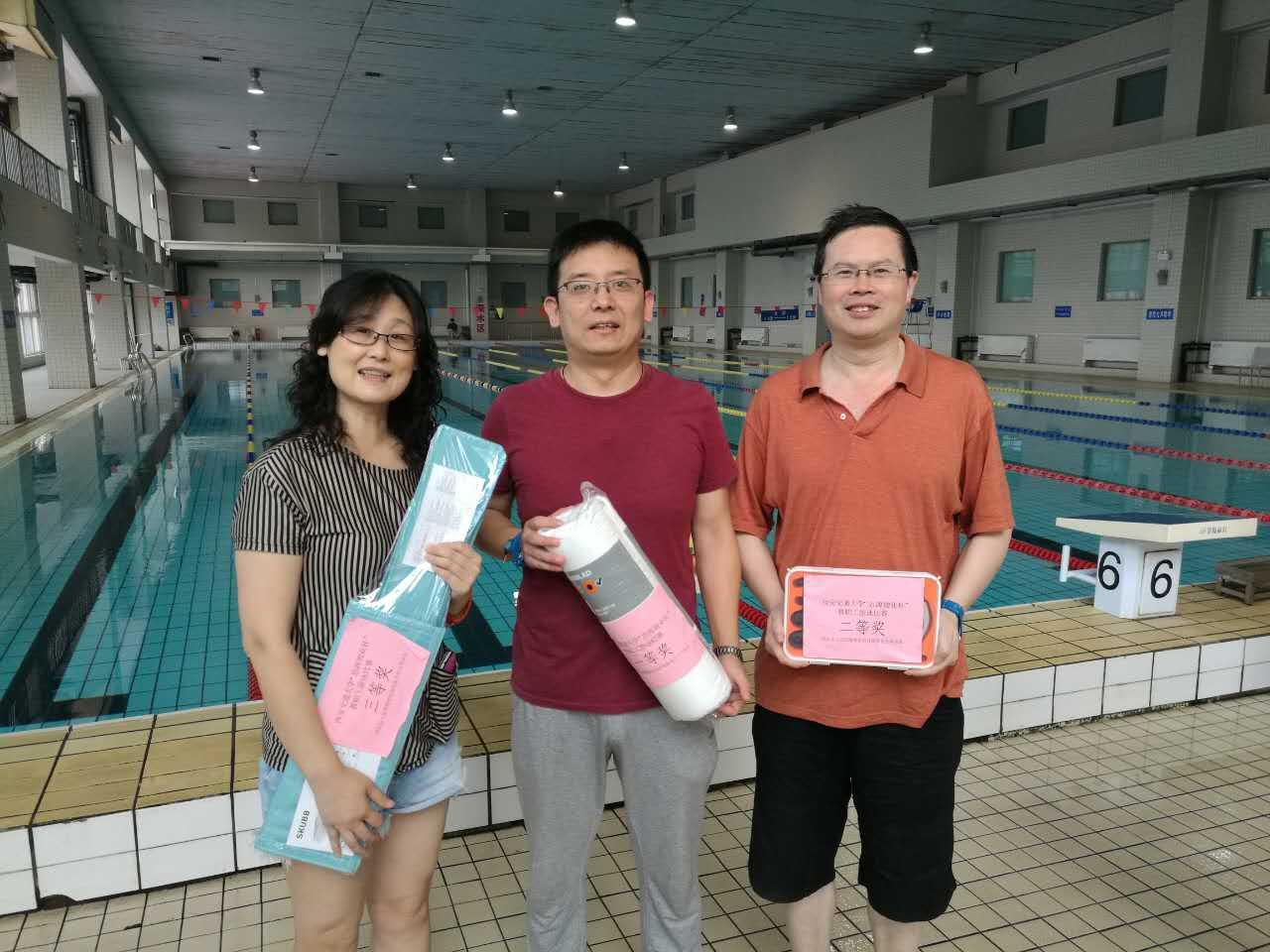 2016.07.16上午在我校东区游泳馆举行了“2016年西安交通大学“思源物业杯”教职工游泳比赛,其中男、女丙组的几个项目在所有项目中竞争较为激烈,我院运动员王华,周庆华,郑琼分别参加了不同组别三个项目的的比赛,经过他们的奋力拼搏,每人均有斩获,我们向他们表示祝贺。希望今后有更多的教工积极锻炼身体,加入到获奖队伍中来。比赛成绩如下: