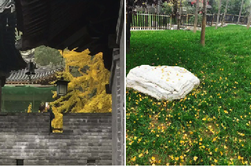 日本人喜欢赏樱花,电视台每年都会提供樱花的花期,电台派专人去统计樱花开放的程度。网上也有关于这颗千年古树的叶黄程度的跟踪报道,11月1日的文字报道说,西侧树叶已呈现出金黄色,但东侧还有些绿。今天阴天有霾,还下起了小雨,我们终没赶上“碧云天,黄叶地”的奇景。