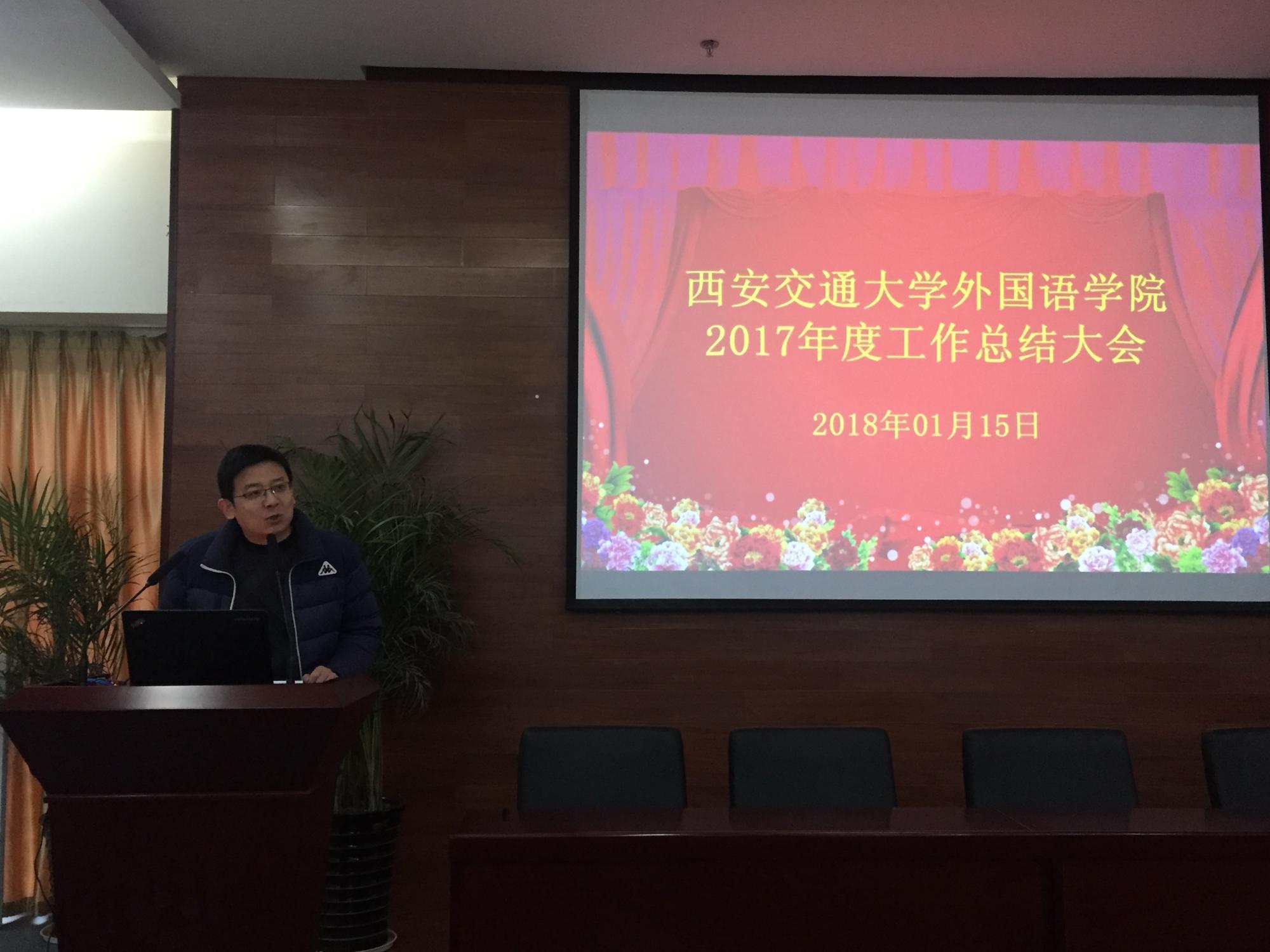 时光荏苒,岁月如梭,2017年已经悄然离去。2018年1月15日上午,外国语学院在外文楼B1001报告厅召开全院教职工大会,总结2017年度工作,传达落实学校寒假工作会议精神,会议由学院工会主席王华主持。