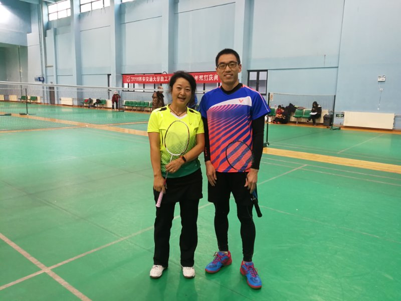 在刚刚结束的交大2018年教职工羽毛球协会成立八周年庆典活动中,我院陈琦老师与电信学院刘虎老师组成的混双组合联手全力以赴,与对手比拼火力全开,展现出超越自我,永不言弃的竞技精神。经过奋力扣杀、轻盈吊球、精准进攻以及巧妙防守,最终以小组第一名的成绩挺进第二轮比赛。在比赛中,二位老师配合默契,取得了良好的成绩,充分体现了体育竞技的顽强拼搏、力争第一的精神风貌。