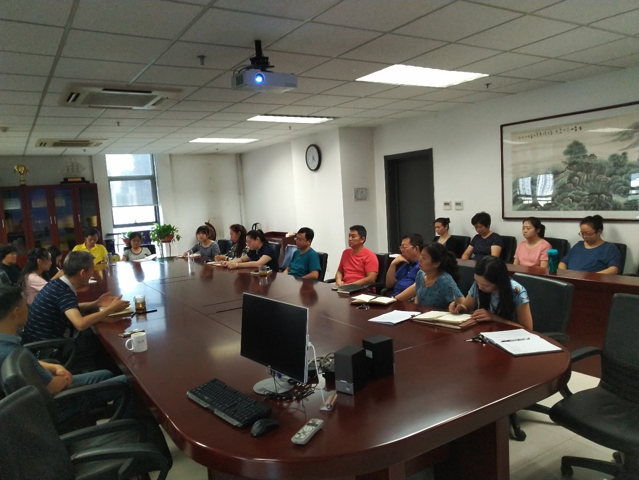 7月22日下午,外国语学院机关党支部在外文楼B912会议室传达落实暑期工作会议精神,学习“习近平总书记在两院院士大会上的讲话精神”和全国组织工作会议精神,会议由支部书记马薇主持。
