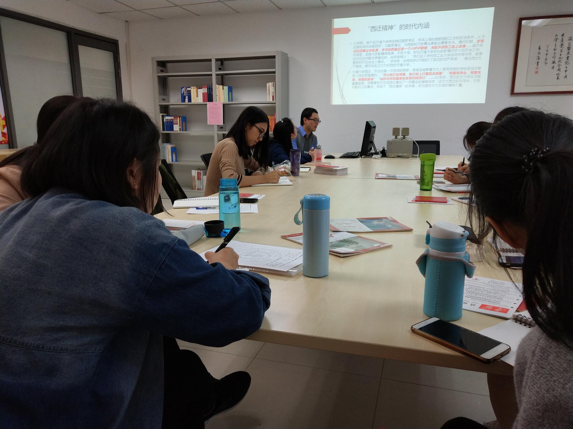 随着外国语学院的不断发展和博士生的日益增多,外国语学院分党委优化了党支部的构成方式,于本学期成立了外国语学院博士生党支部。10月18日中午,外国语学院博士生党支部开展了以“我眼中的西迁精神”为主题的组织生活会。会议由支部书记雷司宇主持。支部党员杜文博和胡莉蓉分别以“弘扬爱国奋斗精神,建功立业新时代”和“弘扬和传承西迁精神,做新的‘西迁人’”为主题跟大家分享了他们对西迁精神的理解。
