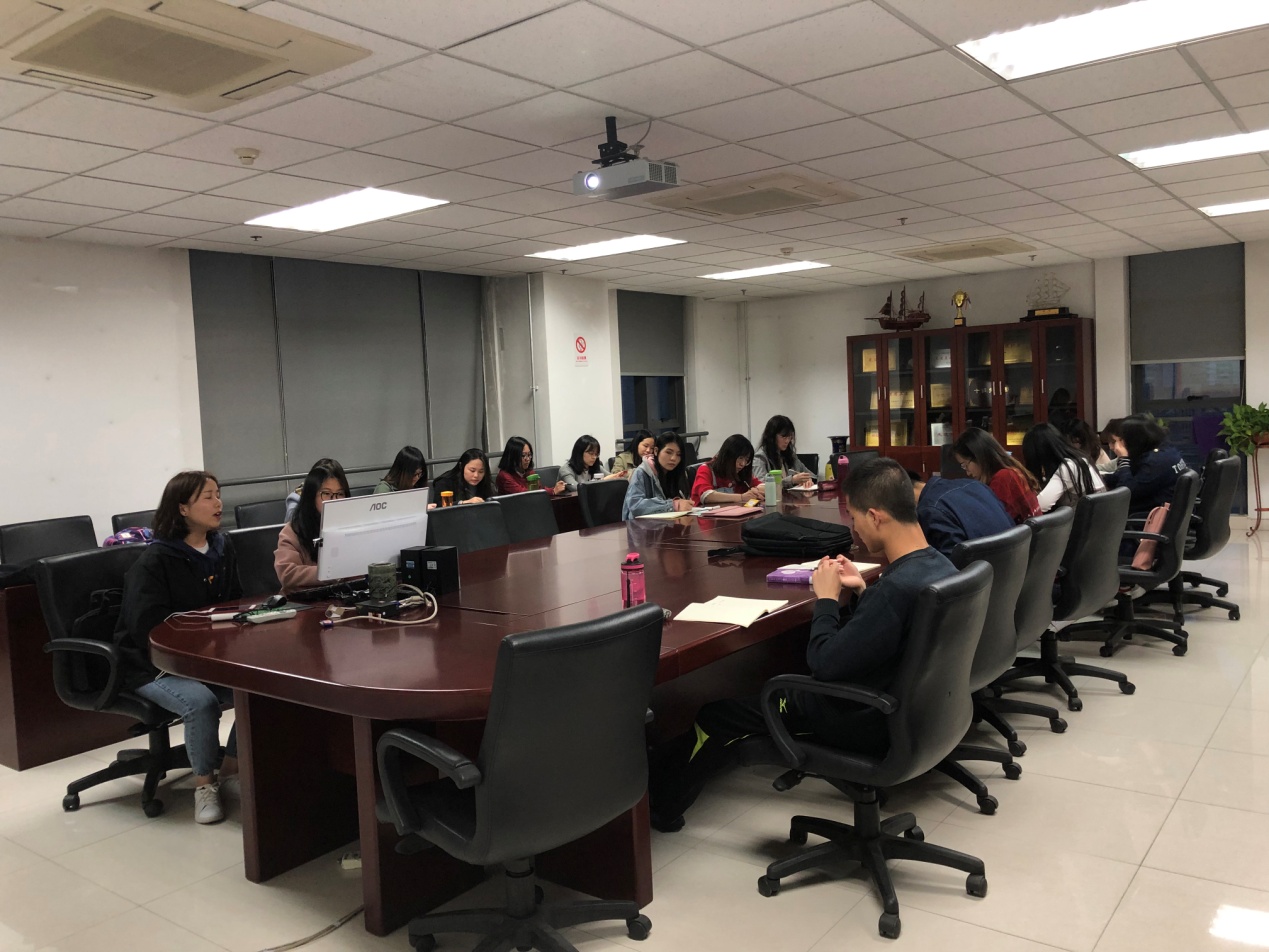 为深入贯彻习近平新时代中国特色社会主义思想,认真学习党的十九大精神和全国两会精神,3月25日晚,外国语学院硕2018级党支部在外文楼B912开展“奋进新时代,筑梦新征程”学习两会精神主题生活会。会议由秦丹丹、肖寒主持。