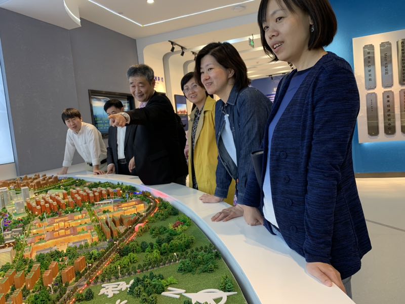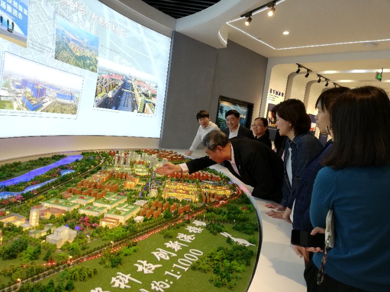最后,创新港建设沙盘吸引了大家的注意力。在沙盘前,张长安老师给大家做了详细的介绍。