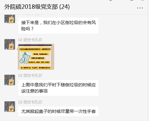孔欢同学科普新冠病毒知识,从饮食、个人卫生、自我防护等方面提出降低风险的建议。此外,她还强调心理防护的重要性,指出个人要全面观察自身情况、用心倾听主流声音、保持与外界联系的应对方法。关于社区防疫,她提醒支部成员乘电梯时谨防风险,勤洗手护健康。