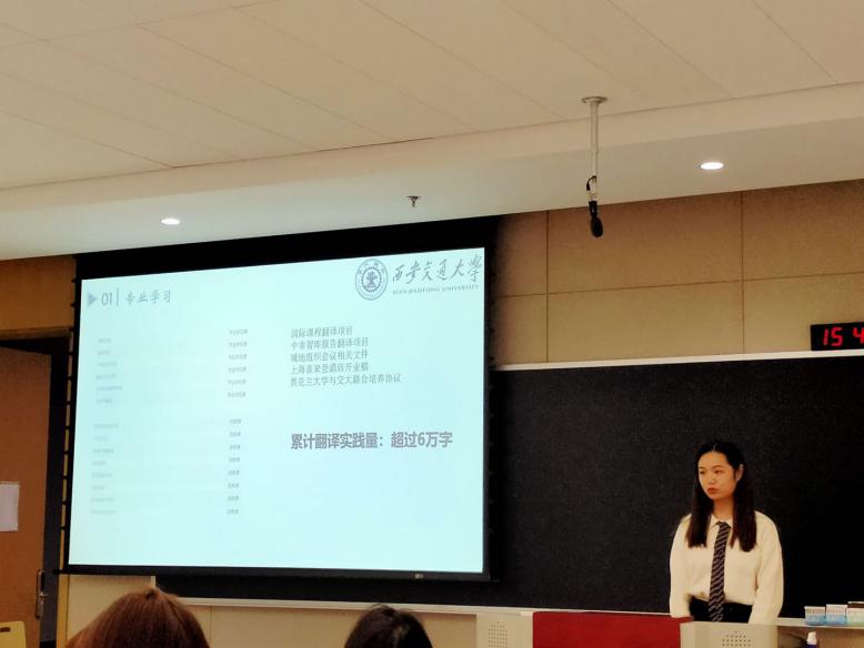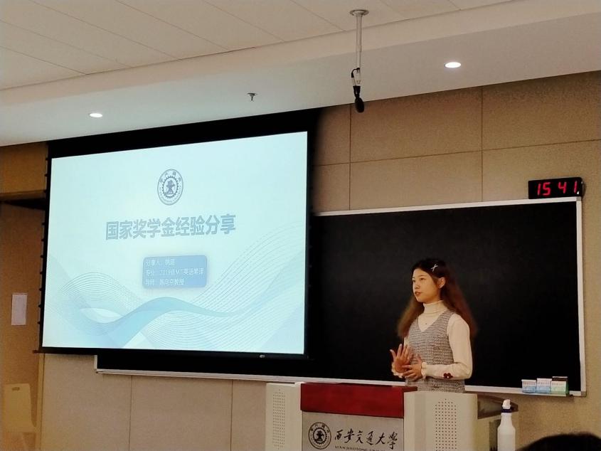 随后,外国语学院硕19级党支部党员同学向本科支部的同学们分享了个人在科研学习方面的成功经验。硕19级党支部MTI专业的优秀学生代表姚瑶、陈妍向大家分享了自己在提高专业技能、参加竞赛等多方面的心得体会,为有志于学习翻译的同学提供借鉴参考。硕19级党支部学硕专业的优秀学生代表杨轩则分享了参加学术会议并宣读论文、作为第一作者出版书籍、竞赛获奖等多项经历。