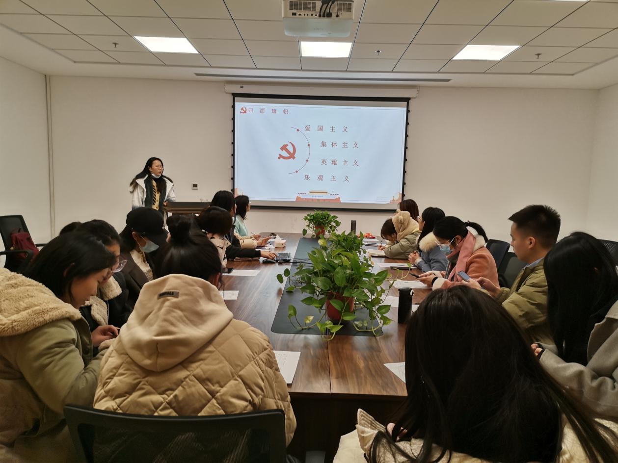 2021年1月7日下午,外国语学院硕0119党支部在涵英楼5077教室召开了以学习“四面旗帜”为主题的党日活动。“四面旗帜”包括爱国主义、集体主义、英雄主义和乐观主义。本次会议由支部书记马瑞主持。