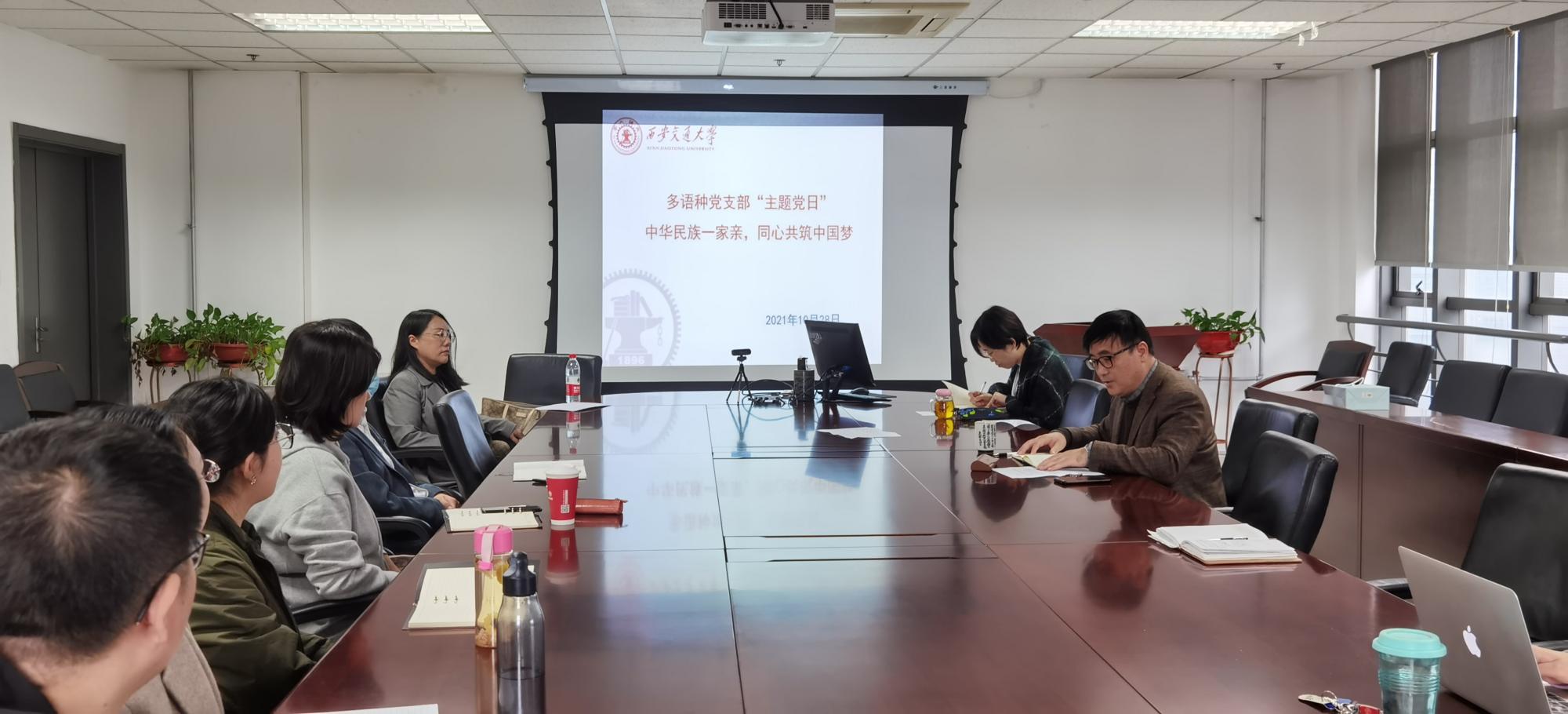 10月28日下午,外国语学院多语种教工党支部举办主题党日活动,这次活动的主题为“中华民族一家亲,同心共筑中国梦”。活动由外国语学院党委委员、支部书记李国栋主持。