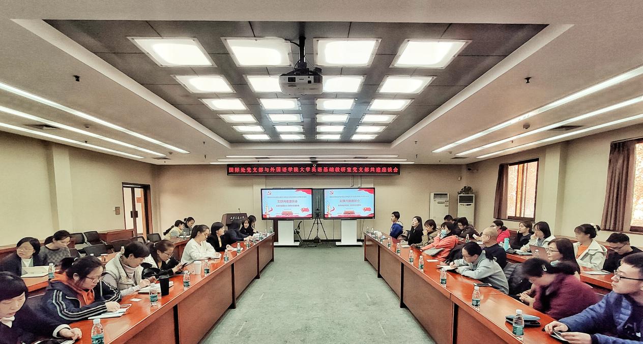 11月24日下午,大学英语基础教研室党支部与国际处党支部举办了主题为“支部共建聚合力、创新务实谱新篇”的支部共建座谈会。国际处党支部党员群众、外国语学院大学英语基础教研室党支部部分党员教师及来自学校不同学院的本科低年级同学共计40余人参加了座谈会。会议由国际处党支部副书记雷艳君主持。