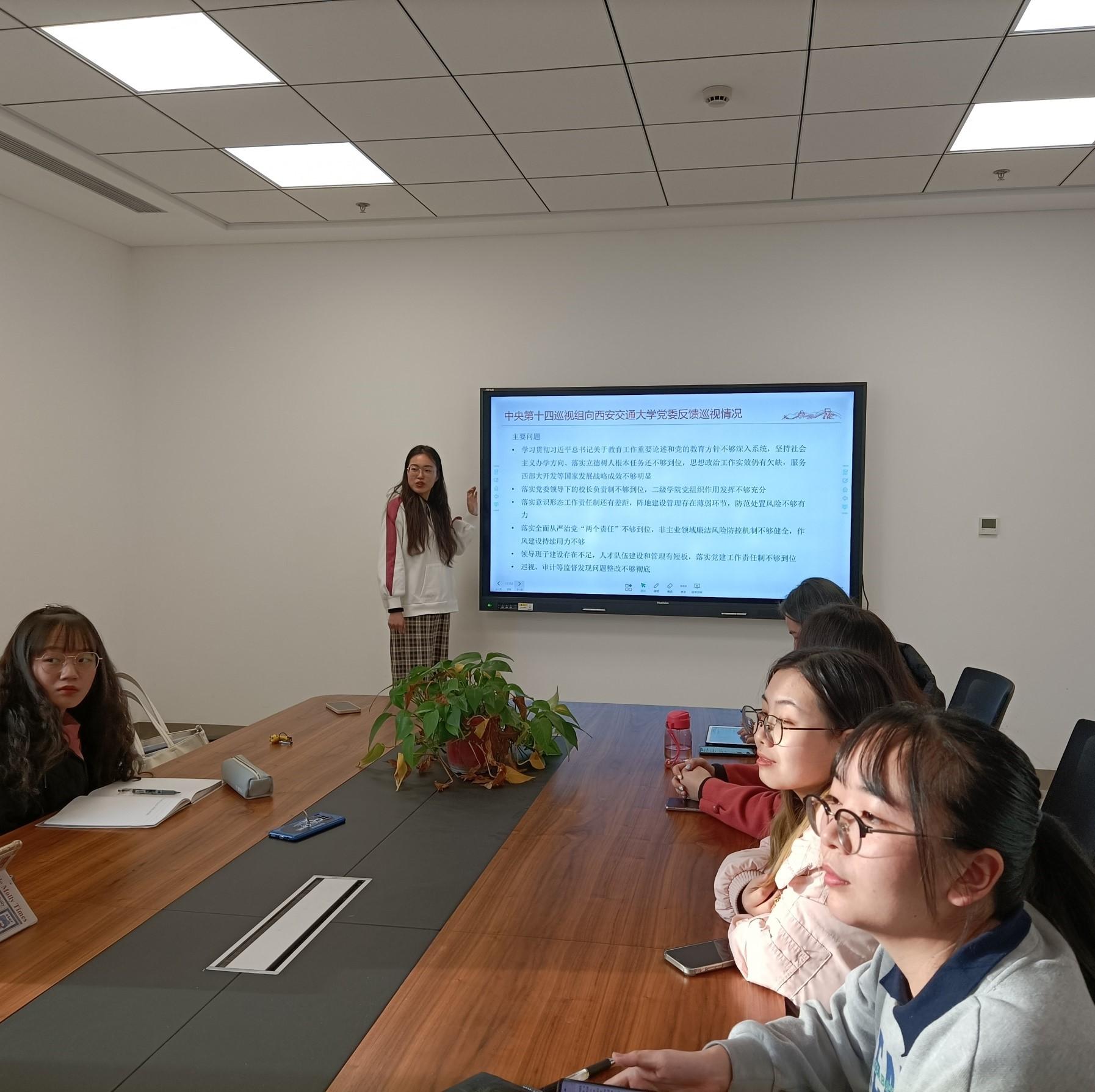 2021年12月3日下午,西安交通大学外国语学院硕1109党支部在涵英楼5125会议室开展 “党风廉政精神教育”主题组织生活。党支部所有同志都按时参会。会议由党支部书记吴鸽主持。