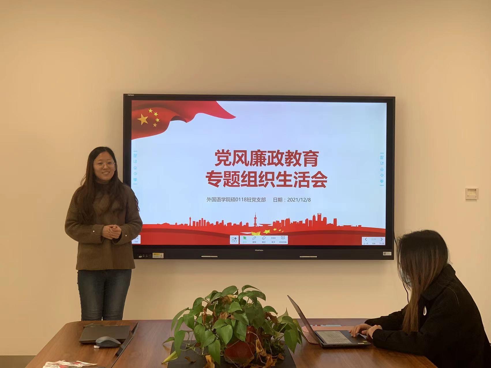 12月8日,外国语学院硕0118党支部于创新港5-5125开展党风廉政教育专题党日活动。会议由党风廉政理论学习和真实案例分享交流两部分组成。