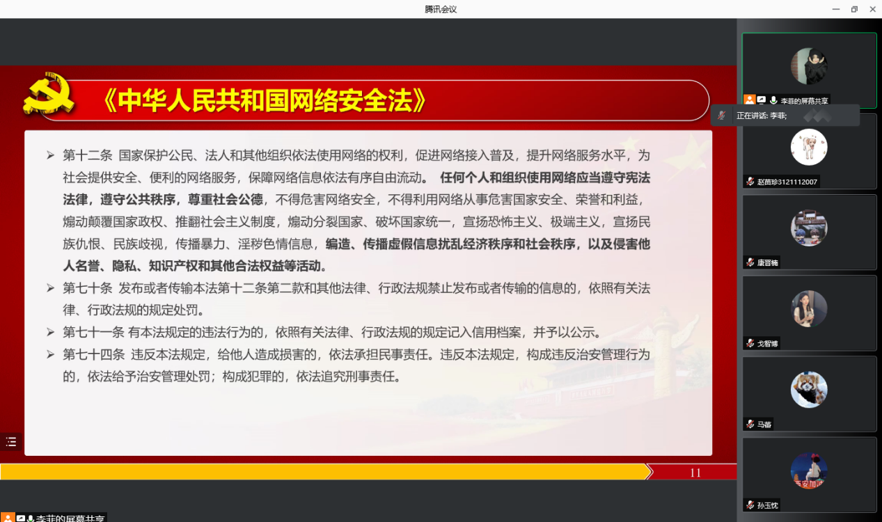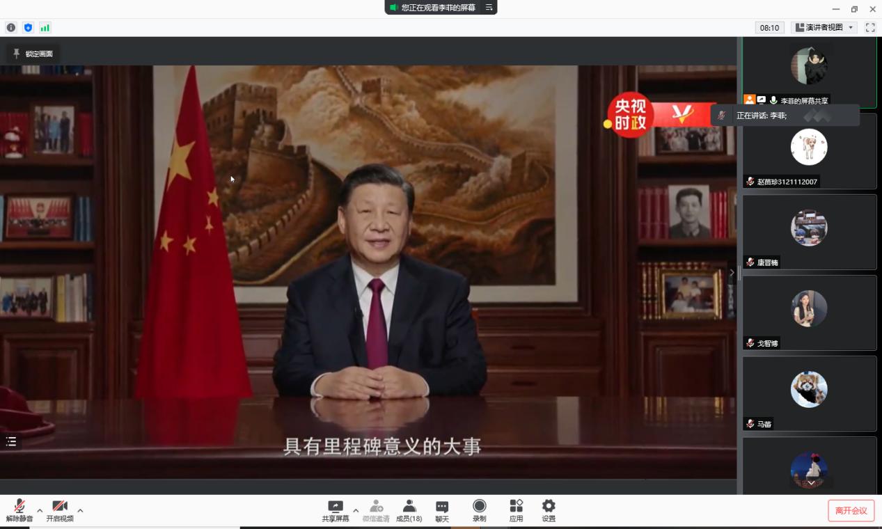 李菲带领大家学习习近平总书记2022年新年贺词和网络安全教育等内容。