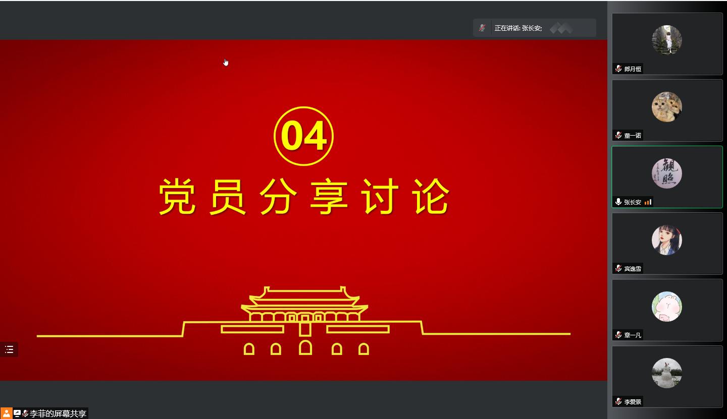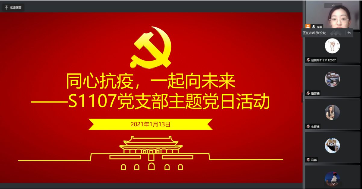 1月13日,外国语学院硕1107班党支部召开线上主题党日活动,学院党委书记张长安参会指导,支部所在班级的同学共同参与,会议由支部书记李菲主持。