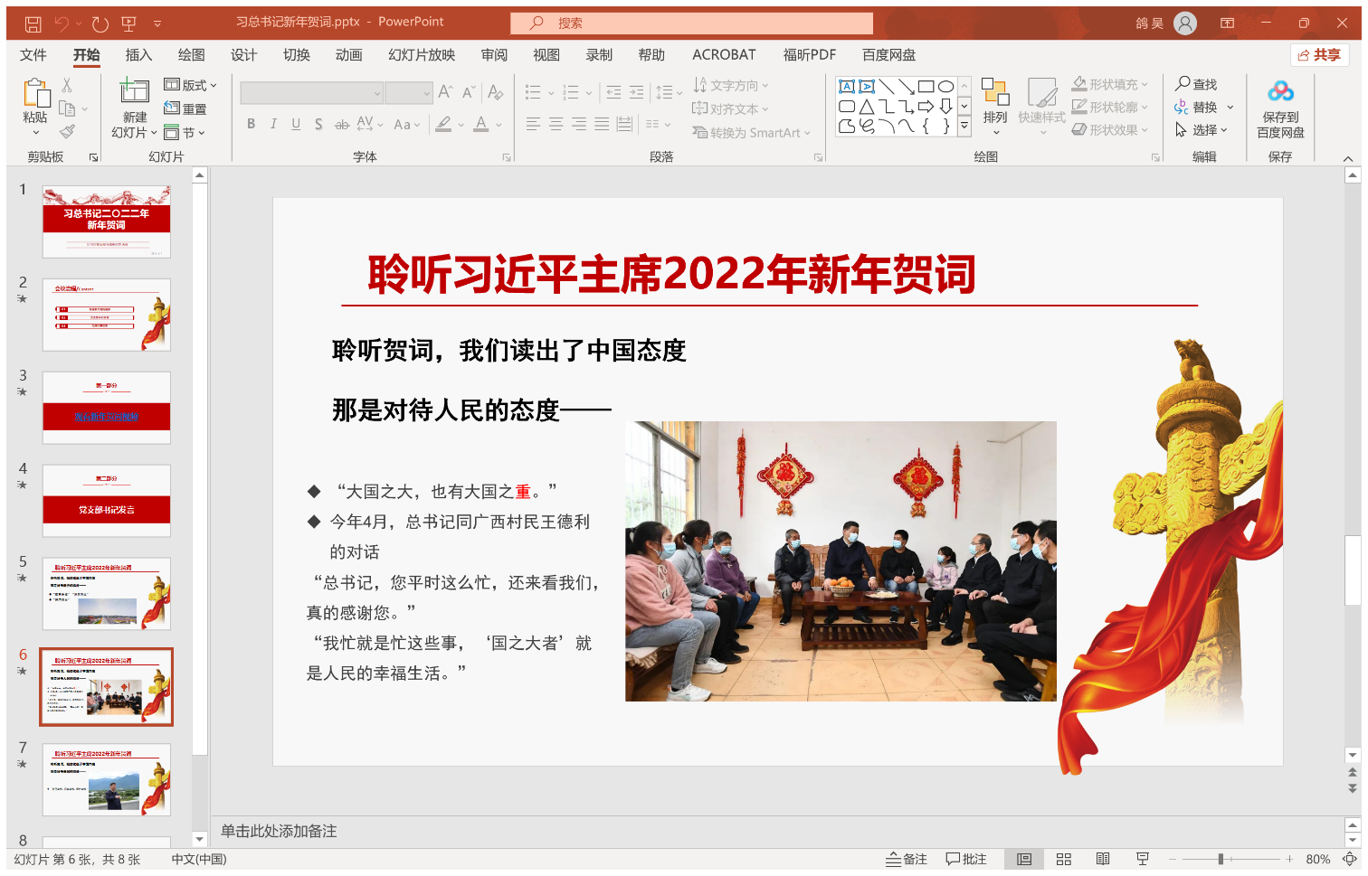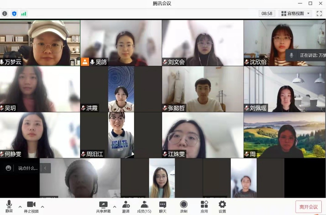 1月7日周五晚上7点,外国语学院硕1109党支部采用腾讯会议形式线上开展组织生活,组织同学们观看习近平总书记2022年新年贺词。硕1109党支部书记吴鸽主持会议。