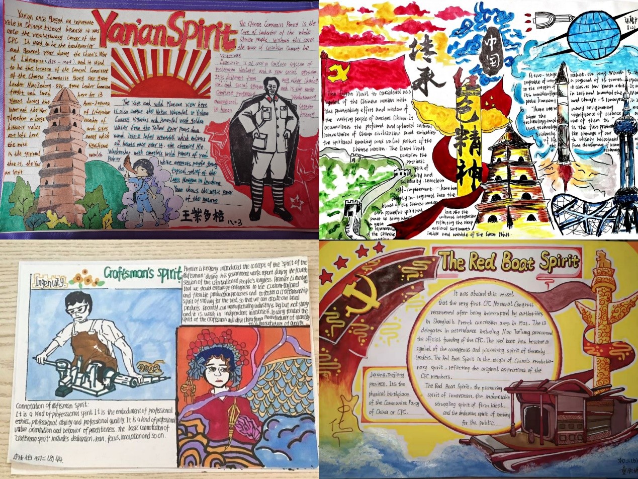 活动前期,大英基础教研室党支部部分党员教师与中学英语学科骨干教师一同精心策划组织。活动结合支部历时2年录制的系列思政微课,充分利用现代信息技术,以中学生学习需求为向导,有针对性地设计了活动内容、流程、规则和反馈方式。学生通过在线观看双语思政微课视频、与师生互动交流、制作手抄报、演讲、撰写作文等形式参与此次活动。同时,为了检测活动质量,本次活动还为学生发放了问卷。截止目前共回收有效问卷873份,学生纷纷表示受益匪浅,不仅提高了英语词汇量、提升了用英语讲述中国故事的能力,积累了历史学科相关知识,还对于中国共产党的光荣历程、中国共产党人的精神谱系有了更加深刻的认识,增强了对于我国的文化与制度自信,激发了为中华民族伟大复兴而努力学习的热情和奋斗之志。
