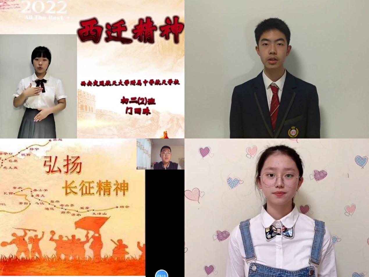 参与此次活动的老师和学生分享了心得体会、提出了建议意见。杨陵区第四初级中学教师、陕西省教学能手海亚妮老师谈到:“农村中学特别需要更多高质量的教学资源,希望大学教师能走出‘学术殿堂’,走进中学尤其是农村中学,观察基础教育现实,了解基础教育问题,开展基础教育研究,为中学教师提供更多的指导和帮助。”交大附中航天学校初中英语学科负责人胡静文老师提及:“去年我们和大英基础教研室党支部进行了支部共建,取得了很好的效果,孩子们对于那次活动念念不忘。本次活动在西安疫情时展开延续至寒假,微课里面有很多抗疫的小故事以及党史中的鲜活事例,给予了孩子们满满的正能量。”交大附中航天学校初2023届2班门雨珠同学说:“我认真学习了这次的微课视频,觉得内容生动有趣,虽然对我来说有一定的挑战,但是有中文字幕和老师的指导,感觉理解上没有问题。我对西迁精神特别感兴趣,所以录制了演讲视频和全校同学分享,希望以后学校能多组织类似有宜有趣的活动。”