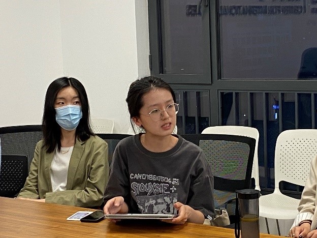 听完两段分享后,两校党员代表积极分享感悟。硕1109党支部英语笔译专业的入党积极分子毕熙亚认为,红色基因是中国革命历史的积淀,是一代代青年推进伟大事业的不竭动力,我们应当将红色基因转化为成长成才的扎实本领。日语口译专业的党员刘佩瑶则表示,通过这次学习,她意识到了如今我们所拥有的优质教学资源和生活条件的来之不易,我们要珍惜学习机会,发挥专业特长,了解国际传播,勇担时代重任,让世界听到中国声音。中国人民大学教育学院教育行政管理专业的李兆静和高等教育专业的张韵歌则从人大的校史和西安交通大学的“西迁精神”及其中的红色传承方面谈及了自己的体会。
