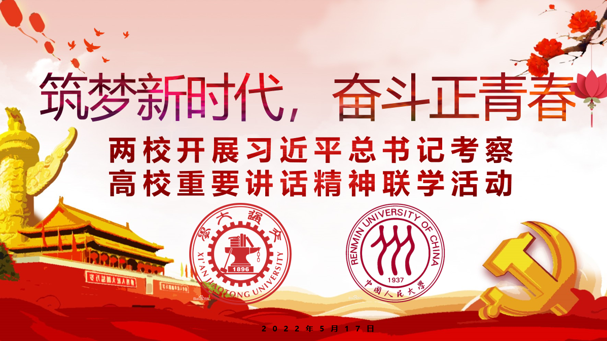 为弘扬“五四”精神,理解“高校是我国哲学社会科学的重要力量”的深刻内涵,5月17日19:00,西安交通大学外国语学院硕1109党支部与中国人民大学教育学院2021级硕士生党支部联合举办线上联学联建活动,共同学习习近平总书记在中国人民大学考察时发表的“让党放心,不负人民”重要讲话和在西安交通大学考察时发表的“西迁精神”重要讲话内容。西安交通大学外国语学院硕1109党支部书记吴鸽主持会议。