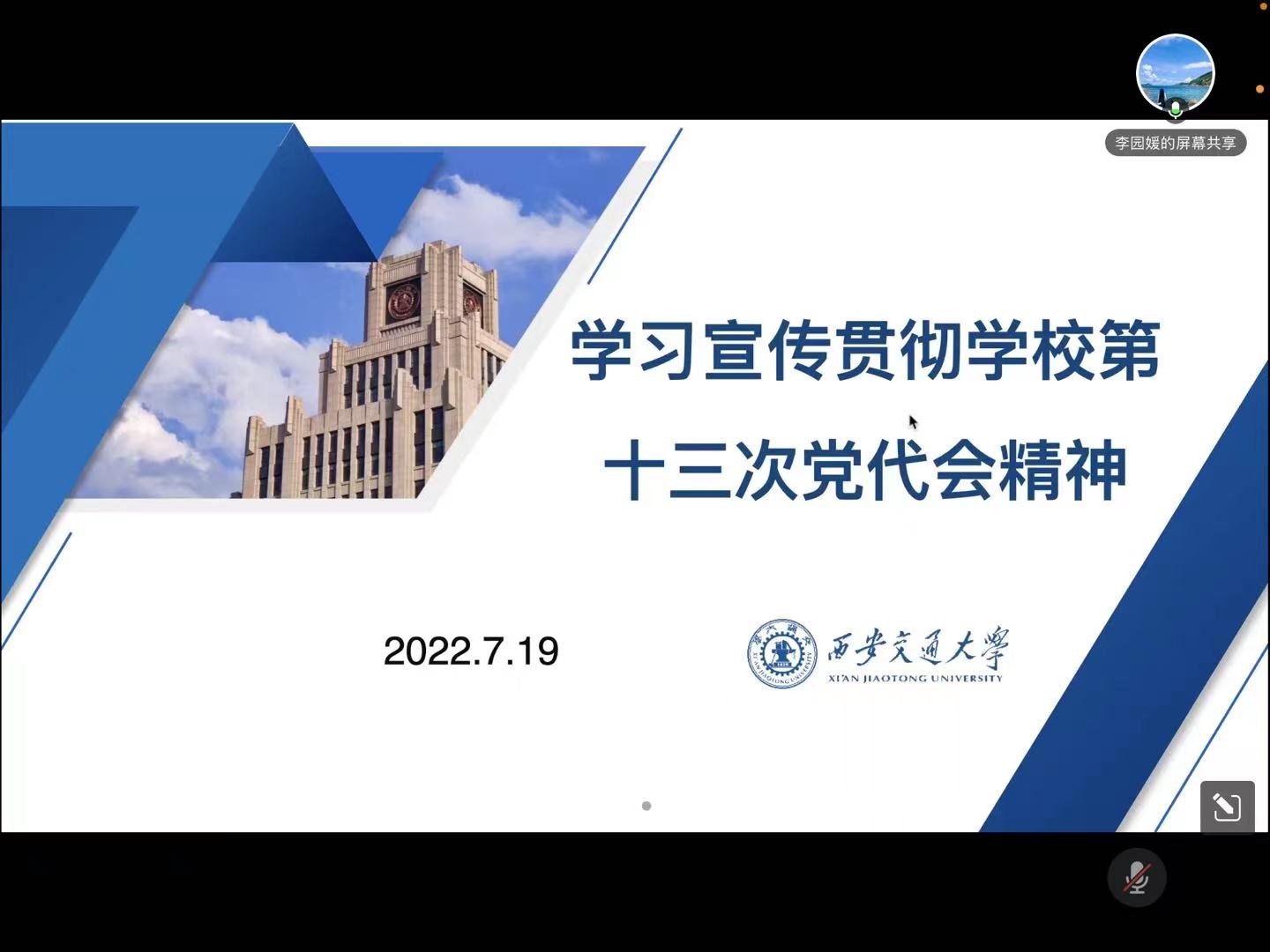 最后,李园媛同学带领大家学习宣传贯彻学校第十三次党代会精神。6月9日上午,中共西安交通大学第十三次代表大会在创新港涵英楼千人报告厅隆重开幕。大会的主题是:高举习近平新时代中国特色社会主义思想伟大旗帜,深入学习贯彻党的十九大和十九届历次全会精神,全面贯彻习近平总书记来校考察重要讲话精神,牢记为党育人、为国育才使命,落实立德树人根本任务,胸怀国之大者,弘扬西迁精神,勇担国家使命,共创交大荣誉,加快建设中国特色世界一流大学,以实际行动坚决拥护“两个确立”、坚决做到“两个维护”,为全面建设社会主义现代化国家作出更大贡献。